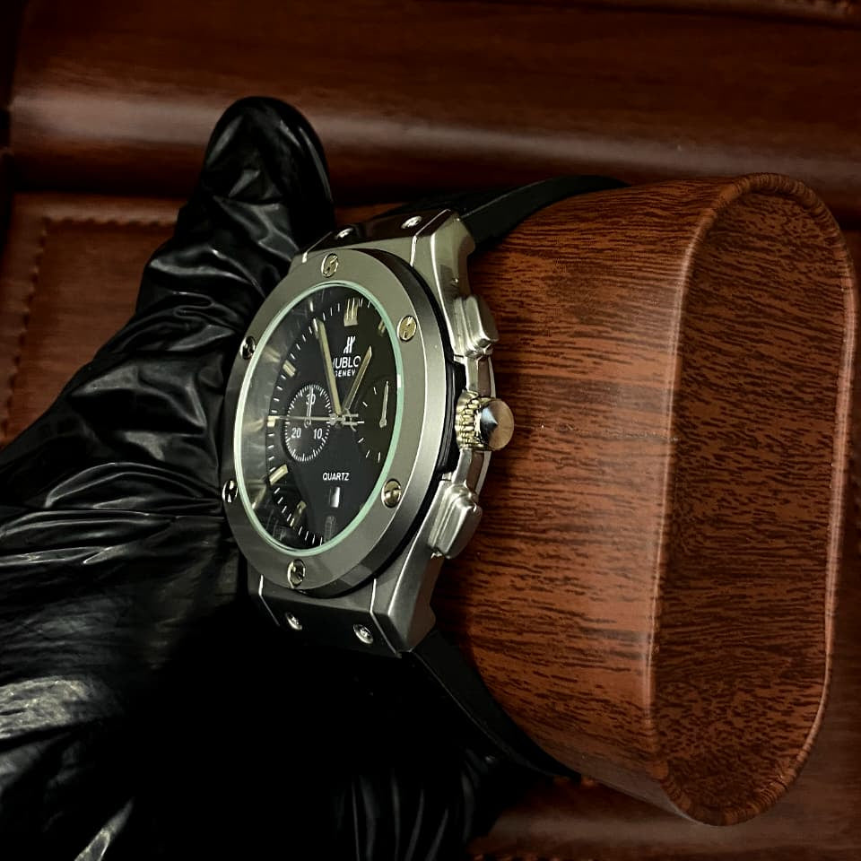 Introducing the HUBLOT BIGBANG BLACK EDITION, an embodiment of audacious design and precision engineering. This timepiece is a tribute to those who forge their own path, blending a sleek, monochromatic aesthetic with the unmistakable craftsmanship that makes a Hublot a legend. It's a statement piece that speaks volumes without saying a word, perfect for those who lead, not follow.