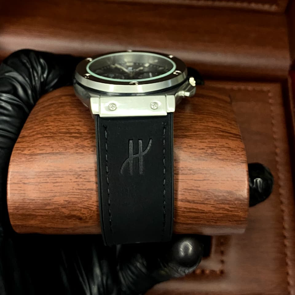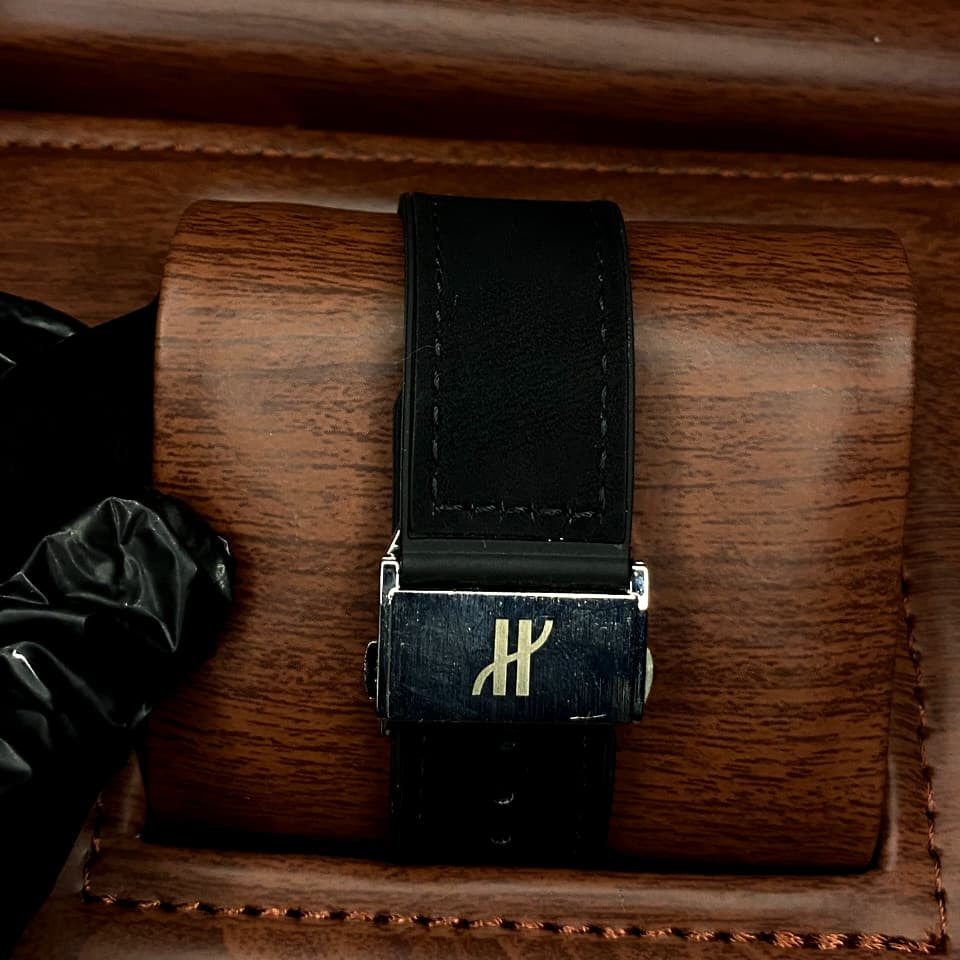 Branded Straps and Lock: The watch comes with an authentic branded strap and lock, both meticulously crafted and engraved with the Hublot name, ensuring every detail reflects the brand's commitment to quality.