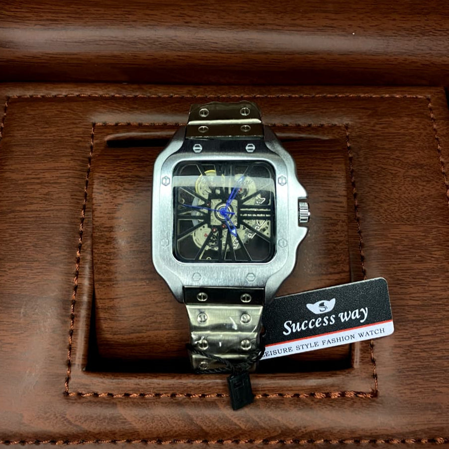 Unveil the intricate dance of time with the SUCCESS WAY TRANSPARENT SPIDER DESIGN BLACK EDITION watch. This exceptional timepiece is more than an accessory; it's a testament to engineering artistry, featuring a mesmerizing transparent dial with a bold black backdrop that reveals the mechanical heartbeat within. Crafted for the connoisseur who appreciates innovative design and precision, this watch makes a powerful statement of sophistication and individuality.