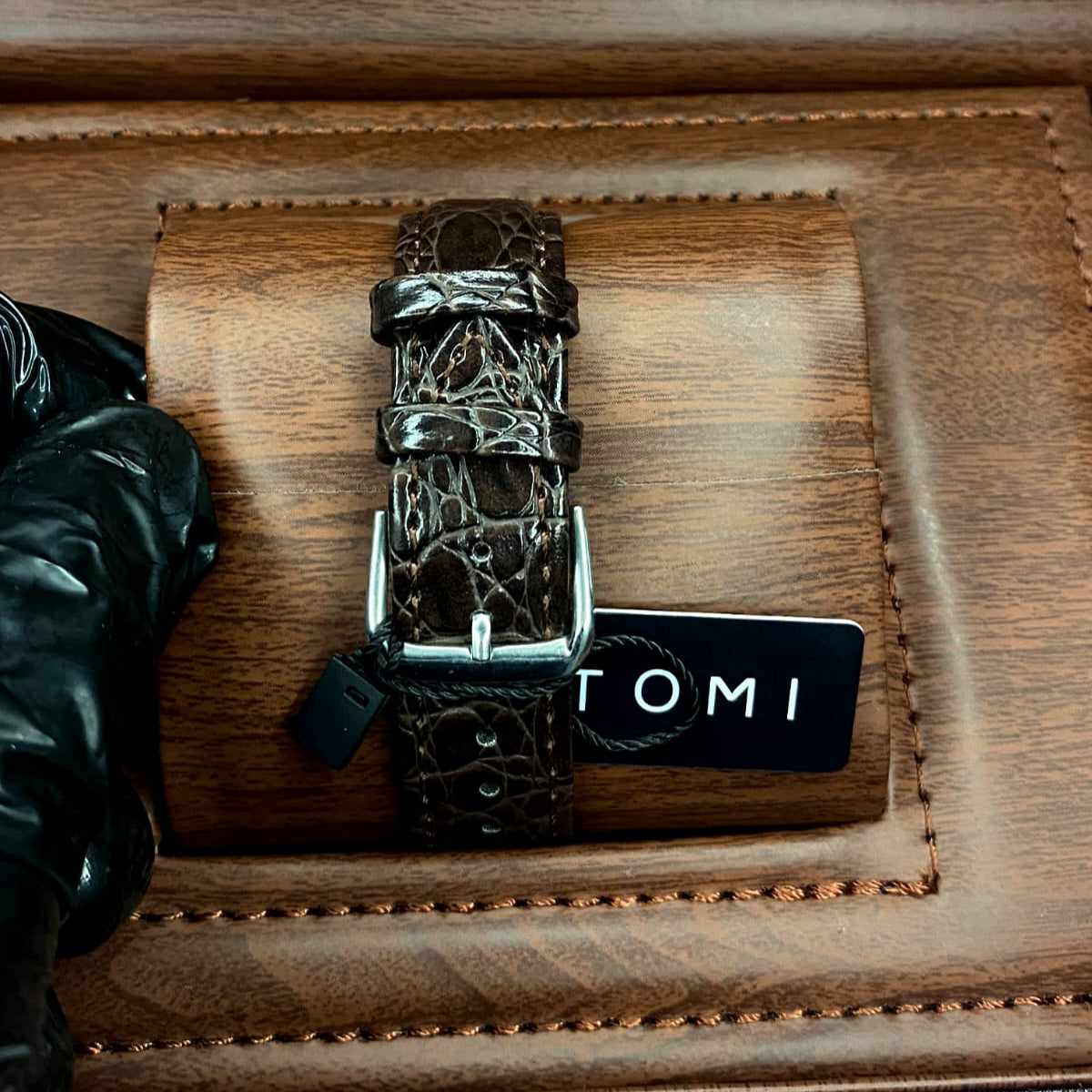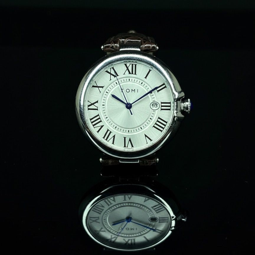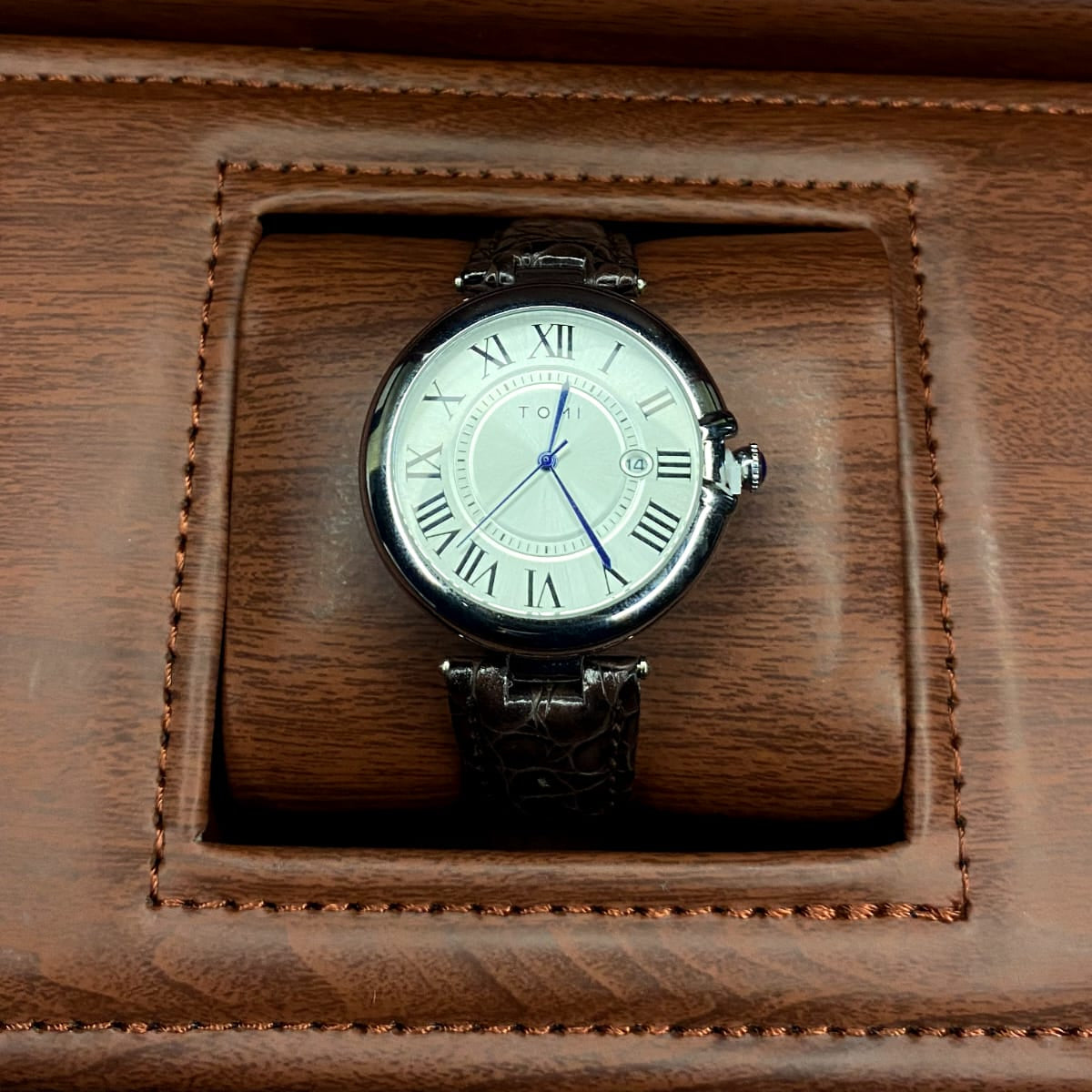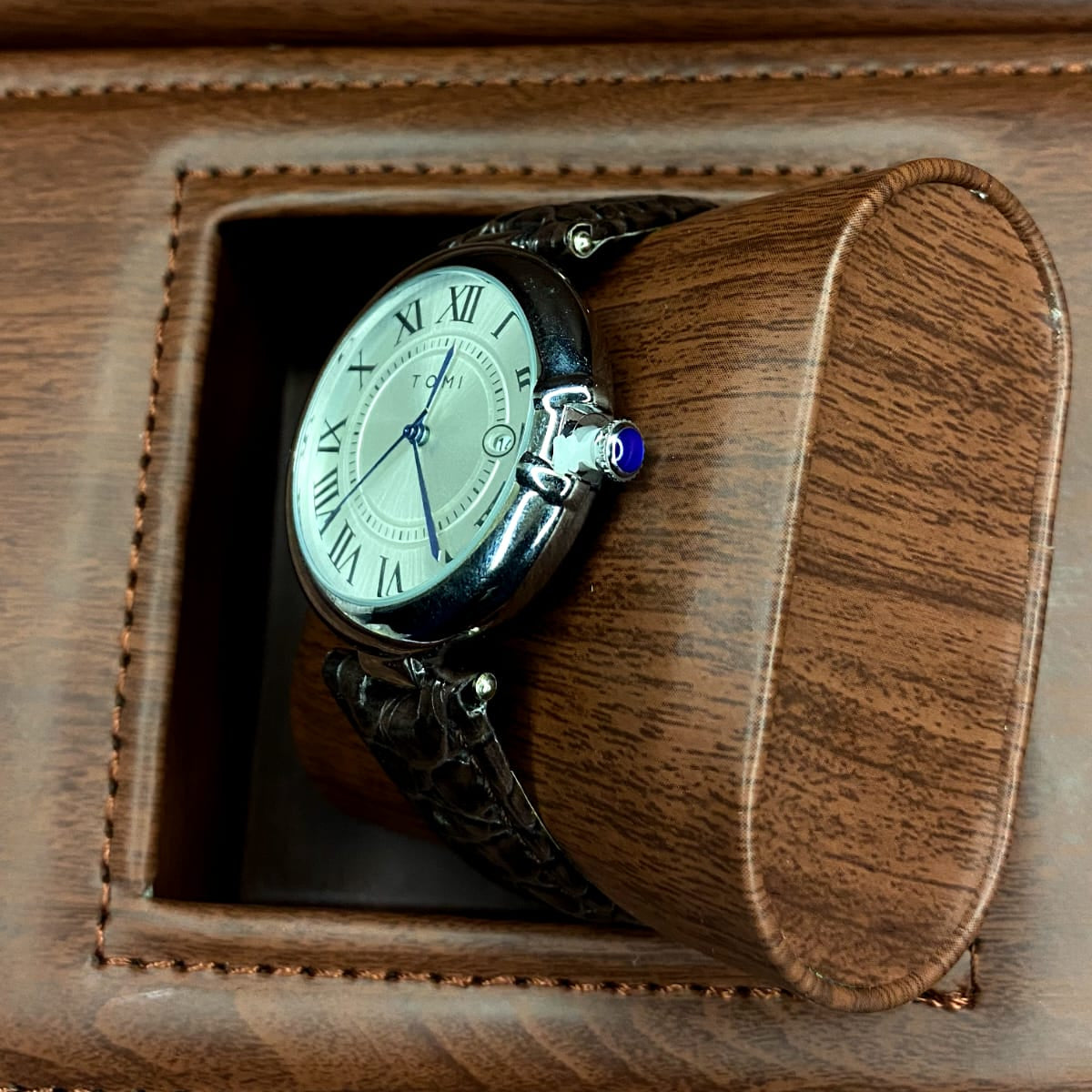 Step into the world of sophisticated simplicity with the Tomi T-075 "Executive Cobra" timepiece. This watch is the ultimate accessory for the modern professional, seamlessly blending a classic business aesthetic with a bold, unique strap that sets you apart from the crowd. It’s a statement of confidence and style, perfectly suited for the boardroom and beyond.